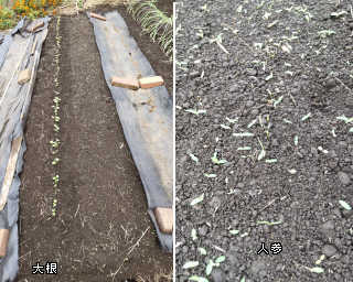 人参の芽が出ているのか草かなのか見間違いそう(#^.^#)で少し様子見ながらの草取り(#^.^#)。