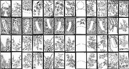中国に渡った日本人の間で使われた札。 短冊札に背景があり、模様が赤短、青短、その他で異なっている。