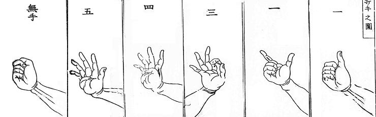 拳会角力図会(1808年(文化五年)) 吉原美人合 符牒図に見える拳の用語