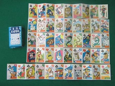 十二支の動物がそれぞれ4枚ずつある遊戯札。子供向けの駄菓子屋玩具として発売された。 遊び方は花札の花合わせと同じで、一人に7枚ずつ配り、山札の周りに6枚表にして開始。 手札から一枚出して山札をめくり、同じ動物を合わせて取る。 札に点数が書いてあり、最後に取った札の点数の合計が最も多い者が勝ち。