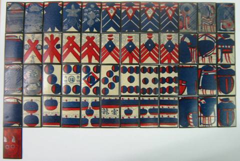 4スーツの遊戯札。数字札が1から9までと、3種類に絵札から成る。 鳥取県地方で遊ばれていたと考えらている。