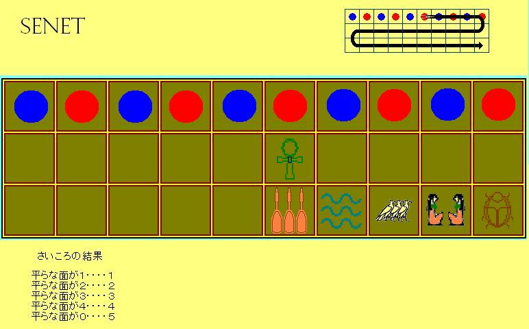 3×10の盤で行う2人用のレースゲーム。別名ナイルギャモン。