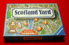 | 概要 | スコットランドヤードとはロンドン警視庁の事。ロンドンを逃げ回る怪盗Xと、 ロンドン警視庁の追跡ゲーム。プレイヤーは一人が怪盗X、 残りがスコットランドヤードの刑事を受け持つ。 ロンドンの街を舞台に双方地下鉄、バス、タクシー、テムズ川の渡し舟の4種類の交通機関を使って移動するのだが、 枚数に限りのある切符が必要である。霧の都らしく怪盗Xは数ターンに1回しか姿を現さない。 1ターン1時間で24時間逃げ切れば怪盗Xの勝ち。 |