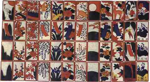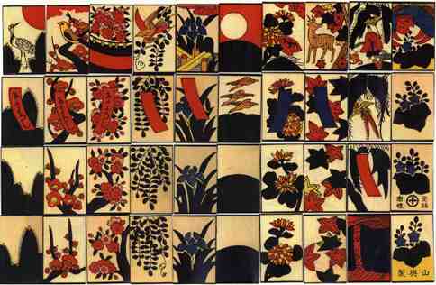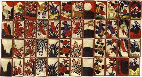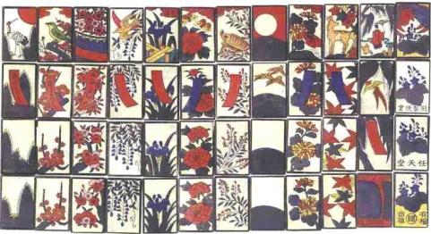 花札と言うと、デザインが決まったもののように思われがちですが、 以前は様々な会社が独自のデザインの花札を販売していました。現在は会社も少なくなり、デザインもほとんど統一されてしまっています。 「百円」(任天堂) 「花の山」(任天堂) 「東山」(任天堂) 「春」(大石天狗堂) 「天狗」(日本娯楽) 「豊太閤」(大日本トランプ) 「太陽」(東洋骨牌) 「山田」(玉水堂) 「王将」(エンゼルトランプ) 「丸十」(山興) 「ハワイ花」 「金時花」(大石天狗堂)