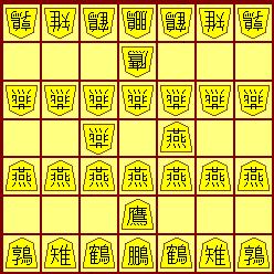 江戸時代に作られた将棋。7×7の盤を用い、鳥の名前が書かれた駒を用いる。 6種類の駒のうち、2種類のみが成ることができる。敵陣は2列目まで。相手の鵬を取れば勝ちとなる。