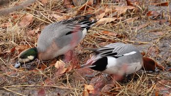 水元に行き、金魚園脇を通たら、池にヒドリガモの群れが浮いていた。