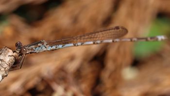 写真右:ホソミイトトンボ♂(野々下)頭部。眼後紋が繋がる。これも特徴だが光が乏しい林の中で小さなイトトンボのこの部分を確認するのはそう簡単ではない。