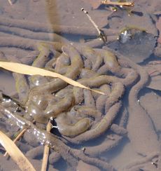 田圃などの産卵環境が埋め立てられたりして多くの産卵場所が失われてしまったが、まだここで細々と産卵が続いている。