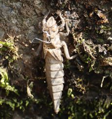 写真右:ナゴヤサナエ羽化殻(江戸川)2個体分の殻が見つかった。