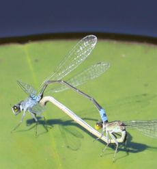 写真右:アオイトトンボ産卵(蓮池:30日)