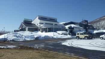 写真:こどもの森(奥中山)雪に覆われた斜面にこじゃれた建物が見えた。