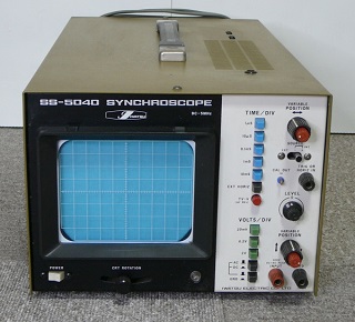 | 特徴 | 5インチ(≒130mm)CRTのアナログオシロスコープ。 ベゼルは四角だが、CRTは円形である。 縦軸の電圧アッテネータや横軸の掃引時間レンジの切り替えが、一般的なロータリースイッチでは無く押しボタンスイッチとなっている。 揮線の傾きを修正するトレースローテーションを物理的に行なえるノブを備える。 内部の半導体は全てディスクリートのトランジスタ一色で、ICはまだ使われていない。 |