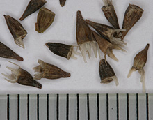 ガイラルディアの発芽適温は20℃前後なので種播きには若干気温が高く早いですが、種を播きました。 種子は二等辺三角形のような形をして、長径約3oと播きやすい大きさです。 |