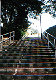 坂の途中に図書館がなかったり、階段からは樹木であまり眺めがよくないという違いはありますが、赤い舗装などは映画の雰囲気そのままでしょう。