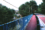 信号を「第一勧銀」の方に渡り、レンガ敷きの駅前通り商店街を行くと、300mほどで大栗川にかかる霞ヶ関橋を渡ります。この橋と、川沿いの道も何度か画面に登場していました。