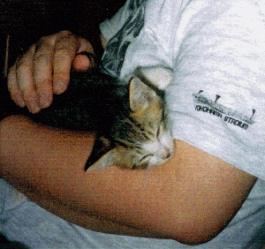 1998年5月21日 正確には住猫なんだけど…。名前は「との」なんだ。こう見えても性格はいいんだよ。もうすぐ1歳になるところなので人間で言えばローティーンてとこかな。 ぼくの自慢は外で遊んでいてもトイレはチャーンと家に帰ってすることなんだ。初めてこの家に来た日に、パパさんがトイレを教えてくれて1日で覚えたんだよ。 でも1回だけ、パパさんが裏庭に植木を植えようと穴を掘っているのを、ぼくのトイレと勘違いしておしっこをしちゃったことがある。パパさんもびっくりしてたけど、ぼくもびっくりしたよ。おしっこって、急に止められないんだよね。パパさんに抱き上げられてもまだおしっこが出ていて恥ずかしかった。 今度、そこはバジリコの畑になるんだって。きっとよく育つと思うな。ぼくのおしっこで。 1998年6月22日 毎日雨ばかりで外に出してもらえない。散歩が大好きな僕はとても悲しい。だから家の中を走りまわってストレスを発散してたんだ。 そしたら、テーブルの上の水の入ったグラスを蹴飛ばして割っちゃった。(;_;) でも、パパさんも、ママさんも怒らずに「とのも、大きくなって力が強くなった」って。僕、少し反省。後で聞いたら長野オリンピックの記念のグラスだって。一杯反省しました。 もうすぐ僕も一歳になるので、おりこうにしなくっちゃ、と思います。(と言いながらママさんの足にかみつく僕) |
