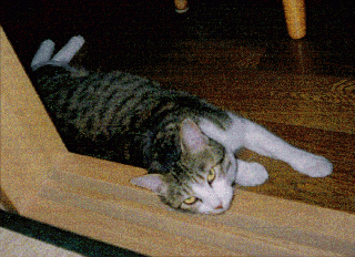 1998年7月10日 今日は僕の誕生日なんだって。人間の成人式くらいだとパパさんが言ってます。ごちそうを食べさせてもらって、庭でたくさん遊びました。 この頃庭で遊んでいると白いノラ猫君が来て僕をいじめるんだけど、ママさんが追い払うために水鉄砲を買ってきました。ほんとは僕が自分で戦わなければいけないと、パパさんは教えてくれました。人間は外に出ると7人も敵がいるのに、僕は一匹なんだからって。 僕も家の中では強いんだけどな・・・・・・。 1998年8月8日 この頃友達が出来たので、毎朝早起きして朝ご飯とトイレを済ませるとすぐ散歩に行かせてもらうんだ。パパさんは、僕がトイレに行かないと絶対外に出してくれないので毎朝ちゃんとトイレに行きます。 友達は近所の飼い猫で真っ白でかわいいんだ。でも人見知りして、パパさんが呼んでも僕と一緒にパパさんのところに行かないので、僕も最近悩んじゃうよ。パパさんが僕が友達と遊んでいるとき呼ばなければいいのに。 それと、この頃気に入っている遊びはセミ採りだよ。毎朝一匹捕まえて家の人に見てもらうんだ。だって、家のあたりはねずみがいないから狩猟本能が満たされないんだよね。 あまり毎朝捕まえてくるので、死にそうなセミを拾ってくるんだって、疑われてしまった。そこで昨日はちゃんと飛べるセミを捕まえて、みんなの前で放したらちゃんとセミが飛んだので、みんながオーって驚いていた。今度はねずみもつかまえるんだ。 1998年8月23日 僕もこの家に来てもう1年になるんだって。初めて体重を計ったときは、キッチンの秤で計れたのに、今はみんなと同じヘルスメーターになっちゃった。この頃体重を計ってもらってないのでどのくらいになったか心配だよ。 1年で10倍以上増えたのは間違いないらしいけど、僕は育ち盛りなんだからね。ジャンプ力だって2メーターは高く飛べるし、飛び降りるだけならもっと高くても大丈夫。毎日セミを採ってトレーニングしているからね。 この頃、ぼくの名前が有名になってきて、ママさんが「とのちゃん」ちの「新関さん」って呼ばれちゃったんだって、パパさんと笑ってたよ。 1998年9月23日 今までは散歩に行くとセミを採ったり、すずめを追っかけたりして遊んだんだけど、セミはいなくなったしすずめも来なくなっちゃって、独りで遊んでるのでつまんないんだよね。それで、うちのだれかに一緒に遊んでもらおうと窓のところで鳴いたりしてみるんだけど、みんな忙しくて遊んでくれない。 パパさんなら会社が休みの日に遊んでくれるかと思っていたけど、なんだか木や、花の世話をしていてちっともかまってくれない。(ときどきなでてくれるけど)で、この間珍しく遊んでくれたら、その後お風呂に入れられちゃった。どうもおかしいと思ったんだ。 近所にも犬ばかりで、猫の友達がいないんだ。先月仲良くなった白い猫の子もこのごろ会ってないしなあ。そんな訳でちょっと欲求不満気味。先週の雨の日に夕方ママさんの隙を見て外に出ちゃったけど、雨戸を閉められちゃって、パパさんが帰ってくるのを玄関の前で待つ羽目になっちゃった。たまたま、パパさんが早く帰ってくれたので助かったよ。 1999年3月21日 半年も日記をサボってしまった。今まで外で遊んでもつまんなかったけど、この頃は毎朝散歩させてもらったりして忙しかったんだ。冬の間も炬燵になんか入らないで外で遊んでるよ。今はテリトリーも広がって、いろんな所を散歩しているけれど、みんなに憶えてもらったので追っ払われたりしないんだ。 雨の日には、外に出してもらえないのでストレスがたまるよね。そんな時はうちの人と遊んでもらうんだけれど、つい夢中になって足にかみついたりして怒られちゃうんだ。この頃はパパさんにはかみつかないことにしたけど。だって、夕ご飯のとき魚をくれなくなっちゃうから。 最近は庭のフェンスを使って綱渡りのまねをしてママさんをおどかしたりしているよ。でもこの間落っこちて爪を傷めちゃった。もう治ったけれど。 1999年4月26日 我が闘病記あるいは闘猫記(その1) 突然ですが、僕、病気になってしまいました。尿管閉塞症なんて何だかあまり人には言えない病気なんだ。20日頃からおしっこが出にくいなあ、と思っていたんだけど26日に僕だけで留守番していたら、急に具合が悪くなってきて動けなくなっちゃったんだ。ママさんが帰って来るまで、もう死んじゃうのかな、と思っていた。すぐ、ママさんが病院に連れて行ってくれて緊急手術(おしっこを抜いてもらった)をしたので、何とか助かったんだ。でも膀胱炎になっちゃってるんで、そのまま入院になってしまいました。 1999年4月29日 我が闘病記あるいは闘猫記(その2) 今日、パパさんと、ママさんが一緒に来て、病院から家につれて帰ってくれました。病院に慣れていないので、ご飯も食べられないし、あまりよく寝られないので、先生も自宅療養の方が良いって言ってた。帰りの車の