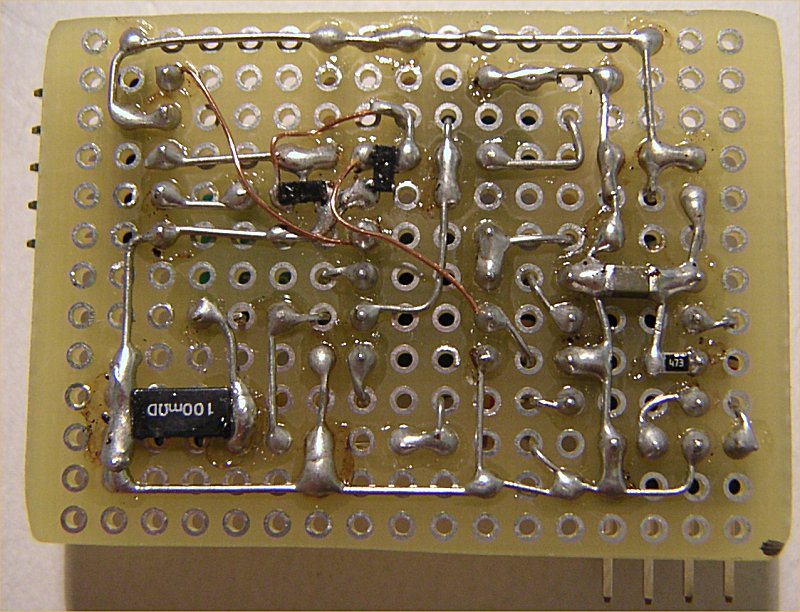 唯一の難点は SOT23 パッケージのためユニバーサル基板との相性がイマイチで、変換基板を使って実装した