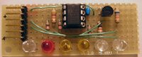 LED を1つ減らす代わりに鉛電池側の電圧も測定し、太陽電池側電圧と鉛電池電圧(満タン具合)を交互に表示するのも実用的かもしれない(表示パターンを工夫しないとわかりづらくなるかな?)。