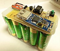 乾電池 ⇒ 5V コンバーター 単三乾電池 10本から 5V へのダウンコンバーター。 2A の出力を取り出せ、今時のスマホで充電に対応。 ニッケル水素電池で使用した際に過放電を防ぐ機能あり。 詳細はこちら。 |