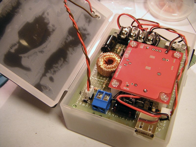 一方、5V 出力の DC/DC コンバーターはトランジスタ技術 2008/10号付録基板を改良して使用することにした。専用基板で安全・確実、コイルも小型で小型・薄型基板に仕上がっている。しかもトラ技付録ということもあり格安(爆)なわけで、これを使わない手は無い。