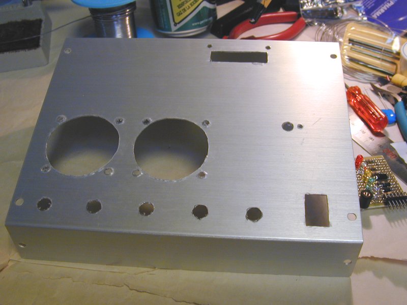 で、さっくりとキットを製作し、LED 基板を作成。電気的には難しいところはないのだが、今回の製作はとにかくケース加工が面倒。そもそも穴が多い上に、角穴、丸大穴と盛りだくさん