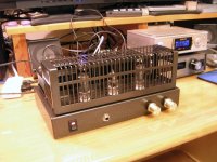 を使ったシングルアンプ。しっかりとしたボンネットも付いて4万円弱ならコストパフォーマンスもさほど悪くはない。届いたので開梱しようとすると、ズッシリとなかなかの重さ(ほとんどトランス類の重み)で、昨今の半導体アンプにはない、文字通りの重厚さを体感
