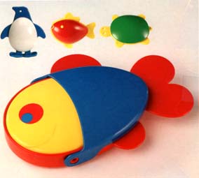 "fishy friends"というお風呂でのオモチャをアメリカから買ってきました。東京や横浜と違ってこちらのような田舎では気に入った物が見つからなかったのだけれども、アメリカでは直ぐ見つけることが出来ました。ただし、レジの店員がレシートを打ち間違えたのに気づかず$3余計に払ってしまいました。それでも彼女は気に入ってくれたみたいでお風呂を上がる時にもなかなか放そうとしません。それと、"wiggle worm"という虫の形をしたニギニギの大きな物も買ってきました。これは赤ちゃんの習性を理解して作られた優れ物です。前回の出張の時に"inch worm"というニギニギを買ってきたのですが、何れも気に入ってくれています。アメリカの乳幼児用のオモチャには結構優れ物がありますので、興味のある方は機会があれば玩具屋さんを覗いてみるとよいと思います。