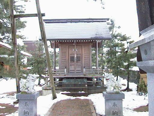 越中守大伴家持が豊前国宇佐八幡宮より分霊して奈呉八幡宮を建立したのが、現在の放生津八幡宮の起りであるという。氏子は家持を祖神と崇め、境内の小社に祀っていたが、その後老朽化して太平洋戦争中に失われ、平成五年、放生津八幡宮社殿百三十年祭を記念して再建した(境内の案内板による)。