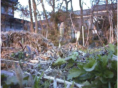 頭の上にあった重い雪が退けると、出てくるもうひとつのもの。それが、つくしんぼです。