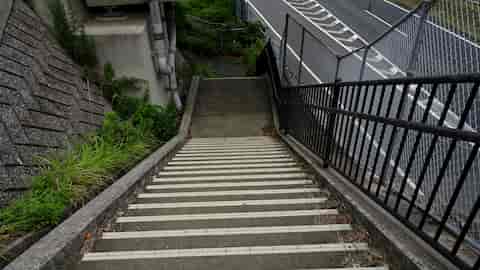 ![]() | 公園を抜けると下に降りる階段があるので降ります |