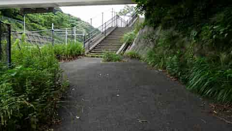 ![]() | 階段を上ると右手に公園に入る階段があります |