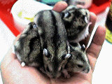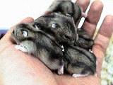 念願のジャンガリアンハムスターの赤ちゃんが5匹誕生しました。昨年の秋から何回も交尾をしているところを観察したのですがなかなか生まれず、今回やっと赤ちゃんがうまれました。写真は生後3日目のものです。一時は交尾してもおなかが大きくなってこないので、これは繁殖は無理かなと思っていたところ、生まれたのでホット一安心です。待っててよかった。