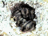 食慾も旺盛のようで、「チーチー」鳴いて母親にオッパイをせがんでいるようです。動きもかなり活発になりもうすぐ巣から出てきそうな感じです。兄弟のシッポを両手でつかんで口にくわえてオッパイを吸うようなしぐさをします。大きさも2倍くらいになりました。