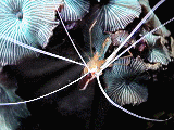 写真のものはロングポリプです。ショートポリプの方が丈夫なようです。水槽内では餌を取る様子もなく、新鮮な海水と水流と十分な光量があれば長期飼育も可能です。以前ワイドバンドアネモネを無脊椎水槽に入れていたのですが、イソギンチャクと間違えて身体をスリスリするのでポリプが開かなくなった事が有りました。そのワイドバンドはペットボトルで作ったビンドウで捕まえて移動したため現在はポリプをよく開いています。