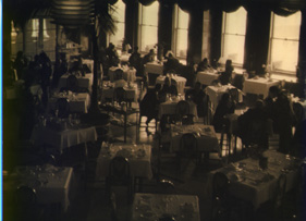 Comment : Western lunch of "Tokyo New Grand Restaurant". Waitress wear KIMONO . Only rich man can take a lunch at such a place. (Contax Sonar1.5)