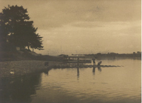 Comment : This is a mouth of a river. The riverbank is stoned. Central behind of this picture, there are houseboats. Passengers drink and eat for a few hours. Central front, the pier seems for a ferry boat. There were few bridges in the past.
