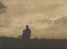Comment : A girl and Mother are looking at a red sunset. We Japenese have a famous song about a sunset. We cannnot stop singing it to myself.