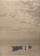 Comment : We can find some boats or nurseries offshore. This man comming back from ocean should have picked some fish or sea weed. Sea farm changed fisherman's life stabilized.