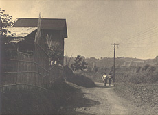 Comment : Two housewives are going to a meeting or something. They are carrying little babies on their back. That's were Japanese style but today's mothers are holding babies in front. Doctors recommend them to do so.