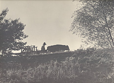 Comment : Mr. TASHIRO takes many pictures of country side. This scene was marely even in those days. A wagon was pulled by an ox.
