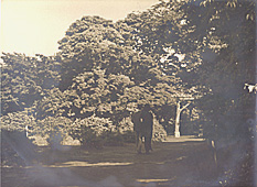Comment : A couple are walking in a park. Lady is wearing Chinese dress but she should not be a Chinese. Today a Japanese lady wears Chinese dress sometimes. This scene is not so different from today's.