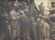 Comment : "Jizo" means a guardian deity of children. They are standing along streets or in temples. This is not ordinary now but there wrere a lot of stones on these Jizo.