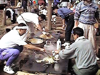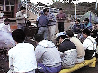 例のごとく火を囲んで打ち上げです。寒いので日本酒がどんどん消費され、となりの一源へ調達に行ったりしていました。しまいには先生方も引っぱり込んでしまいました。