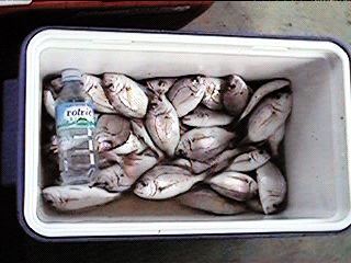 場所は、銚子です。ターゲットはハナダイです。他にウマヅラハギ、シマダイ、イナダ、アジ等も少々釣れたようです。エサはアカエビ、アオイソメを使いました。