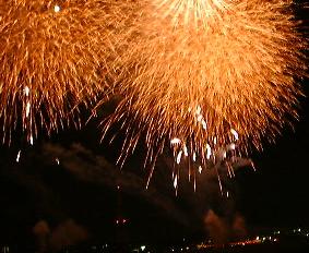 シンプルな花火 周りは真っ暗でしょ!! 芸術的なスターマイン 元に戻る