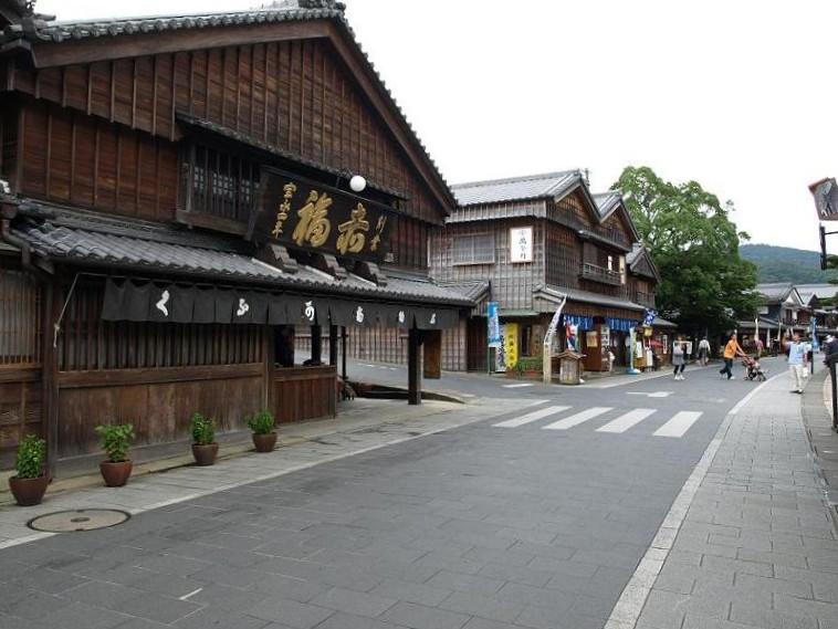 おかげ横丁付近の家並み。清々とした抑制された美しさがあった。過剰なものがないと気分がいい。そういえば空を区切る電柱や電線が見当たらないことに後でこの写真を見て気づいた。