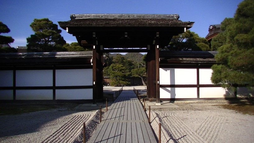 この日は御所庭園が公開されていたので、二王門を通って左側の旧御所を拝観した。仁和寺は京都の代表的な門跡寺院であり、住職の住いは御所ということになる。皇族門の向こうに宸殿の南庭が見える。