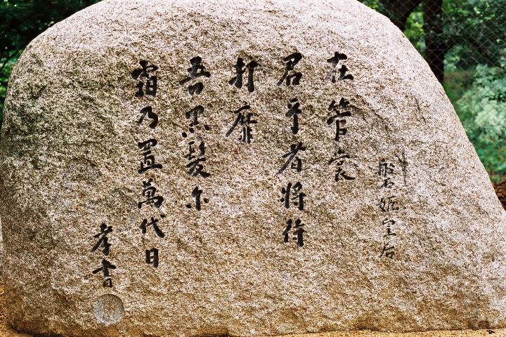 仁徳陵西遊歩道の樋の谷水路付近に磐姫皇后の歌碑がある。 「ありつつも君をば待たむうちなびくわが黒髪に霜の置くまでに」(万葉集巻二) 歌碑は仁徳陵の傍にあるが、磐姫の別居先は遠く離れた南山城の筒城、陵墓は奈良の佐紀にある。この歌にあるように、夫への愛情が深ければ深いほど、憎しみもまた深かったのだろう。 歌碑は1995年に建てられた。書は万葉学者の犬養孝さんによるものだ。犬養さんはこの碑の除幕式の3年後に逝去された。 次へ
