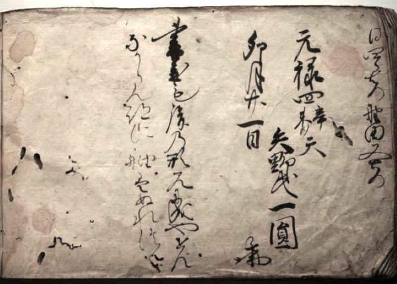「より三里戻り 以布理浦大師堂休意庵ニ壱宿卯月十四日晩 いふりより屋またムラ迄八里 山田ノ紺屋ニ
